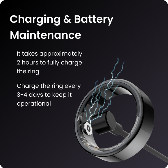 The Loop Ring’s battery typically lasts 3-5 days on a single charge, depending on usage. For optimal performance, we recommend charging it every 3-4 days. A full charge takes approximately 2 hours.
