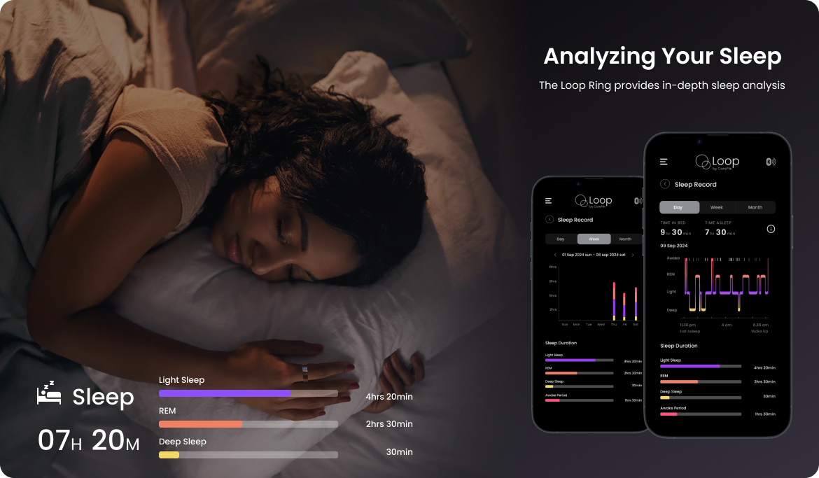 Absolutely! Wearing the Loop Ring during sleep enables detailed tracking of your sleep stages—Light, REM, and Deep sleep—along with your awake periods, giving you a comprehensive sleep analysis.